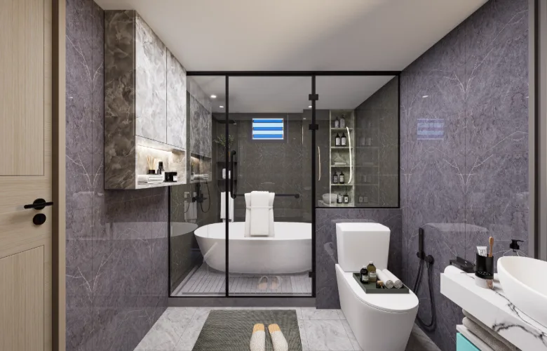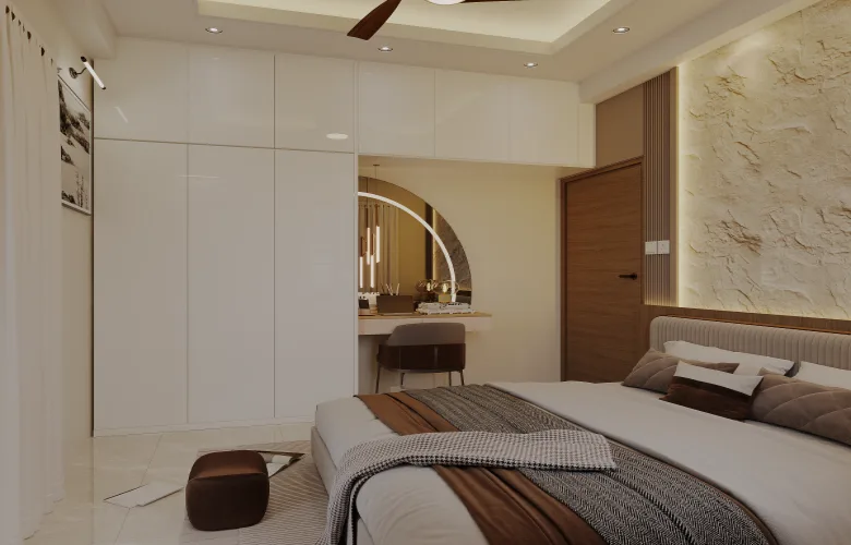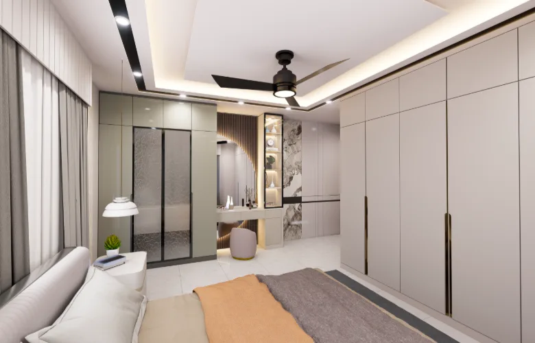 - Added glass components in wardrobe doors and shelves to increase the perception of openness in narrower zones.