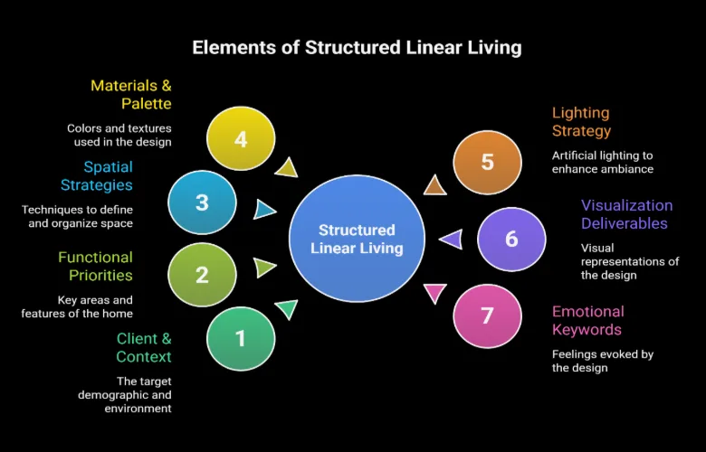 - Maintained a neutral color palette to ensure visual continuity when viewing elongated space arrangements.
