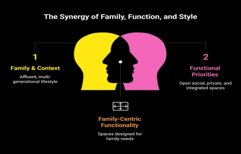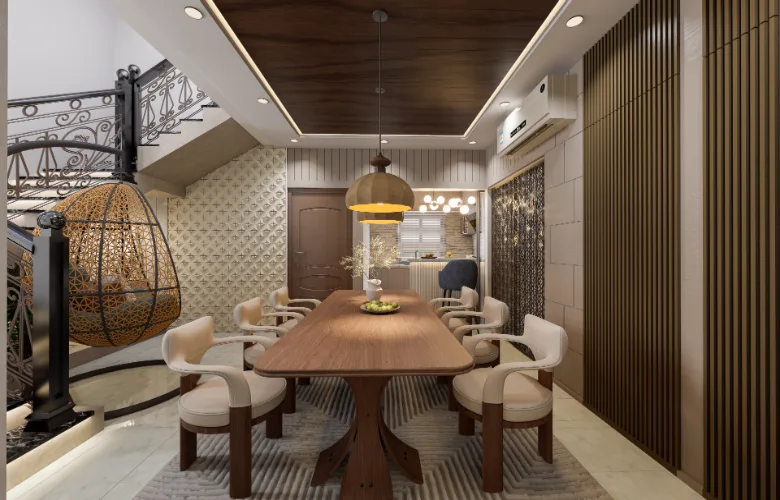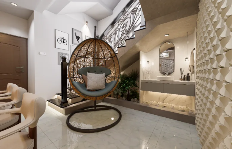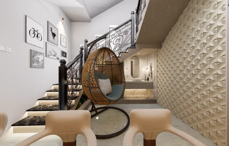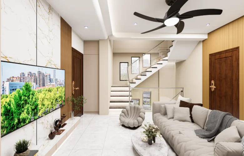 One of the most significant decisions made during the design process was making the stairway visible within the living space. Rather than attempting to hide structural realities, the designers emphasized them. To achieve this, they used vertical wood slat and lighting to transform what would normally be considered obstacles into visual interests. Ultimately, the home represents a way of life that emphasizes warmth, presence, and subtle luxury.