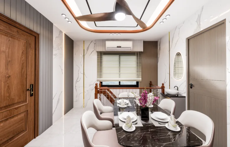 - Integrating the staircase into the living area eliminates unnecessary circulation zones.