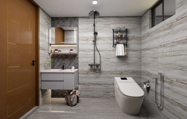A:Open designs, a minimal color scheme and an incorporation of all possible types of hidden storage have been implemented to eliminate the unnecessary visual distractions that would limit the movement through a space.