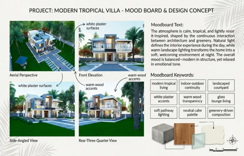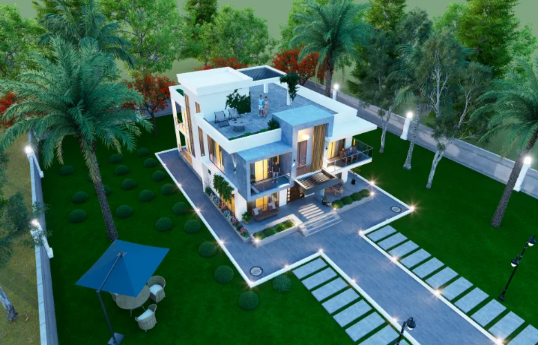 The project progressed through both interior and exterior three-dimensional renderings including daylight analysis, garden atmospheric renderings, and rooftop experiential simulations. The visualizations assisted the client in understanding functional flow, privacy conditions, and outdoor usability prior to construction commencing. The visualization process greatly assisted in synchronizing lifestyle requirements with architectural realization.